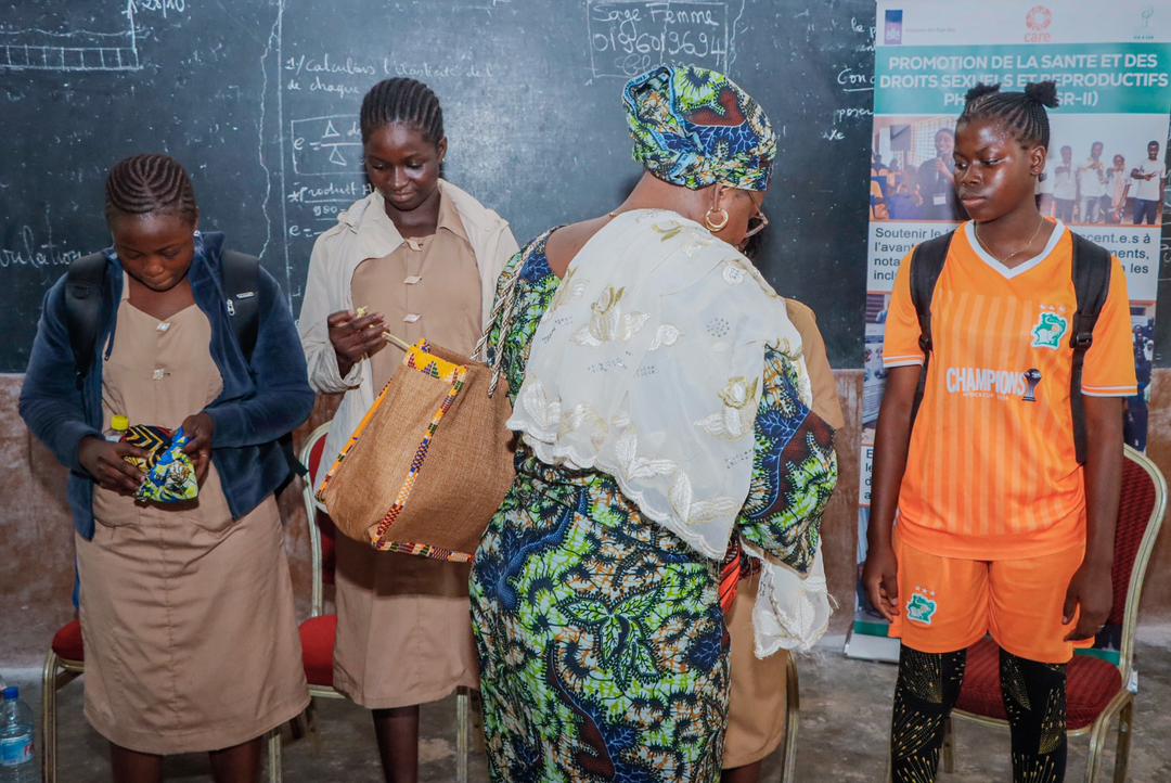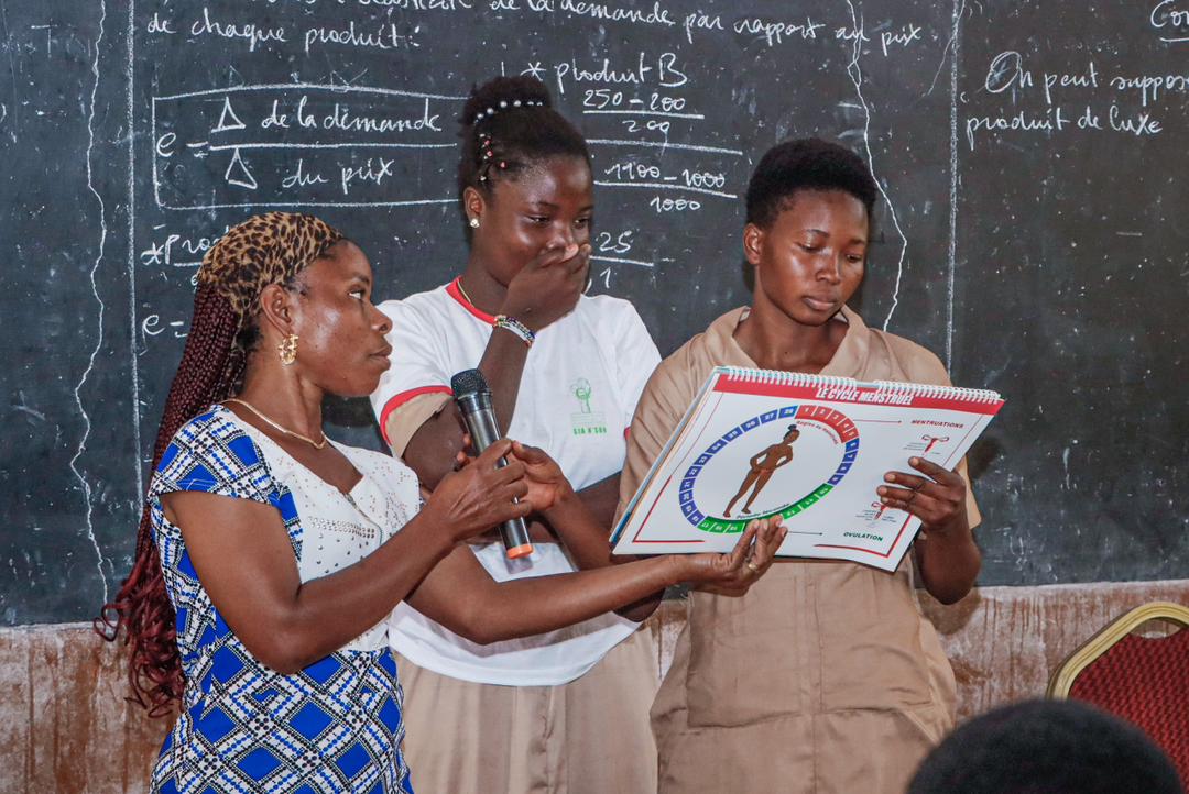 La sage-femme du centre de santé de Pélébina a ensuite entretenu les participantes sur le cycle menstruel, l’hygiène menstruelle et les infections sexuellement transmissibles (IST), invitant les jeunes filles à adopter de bonnes pratiques d’hygiène et à se faire dépister régulièrement.